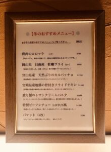 【冬のおすすめメニュー】 ダイニングバーLOTUSの冬メニューが始まりました。 鹿肉のコロッケ(1ヶ) ¥780 旬のジビエ。素材の美味しさ、鹿肉の肉感を…
